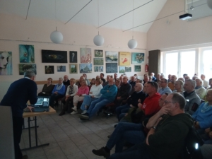 Der Saal im Haus Hugenroth war voll besetzt als am Dienstag, 31. März 2026, Dr. Malliaris vom LWL Münster einen Vortrag  hielt über die neuesten Erkenntnisse zu den Funden bei den archäologischen Ausgrabungen auf der Burg in Nienborg.